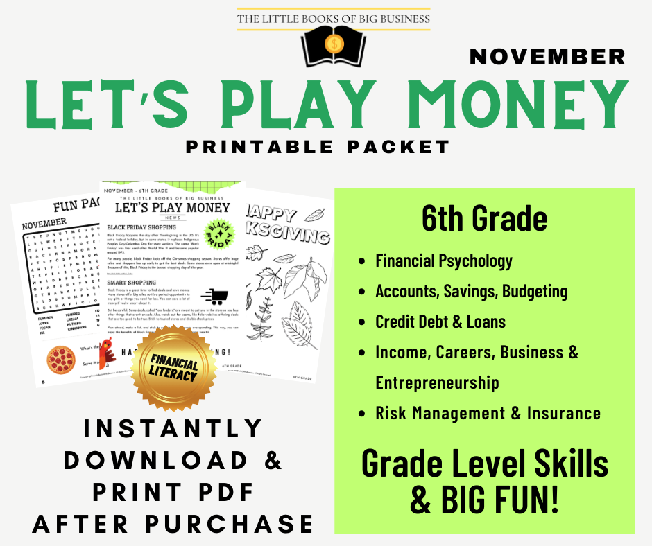 Our fun and engaging printable packets are designed for kids PK - 6th grade. We combine fun activities about entrepreneurship & financial literacy to make it EASY for kids and parents.
